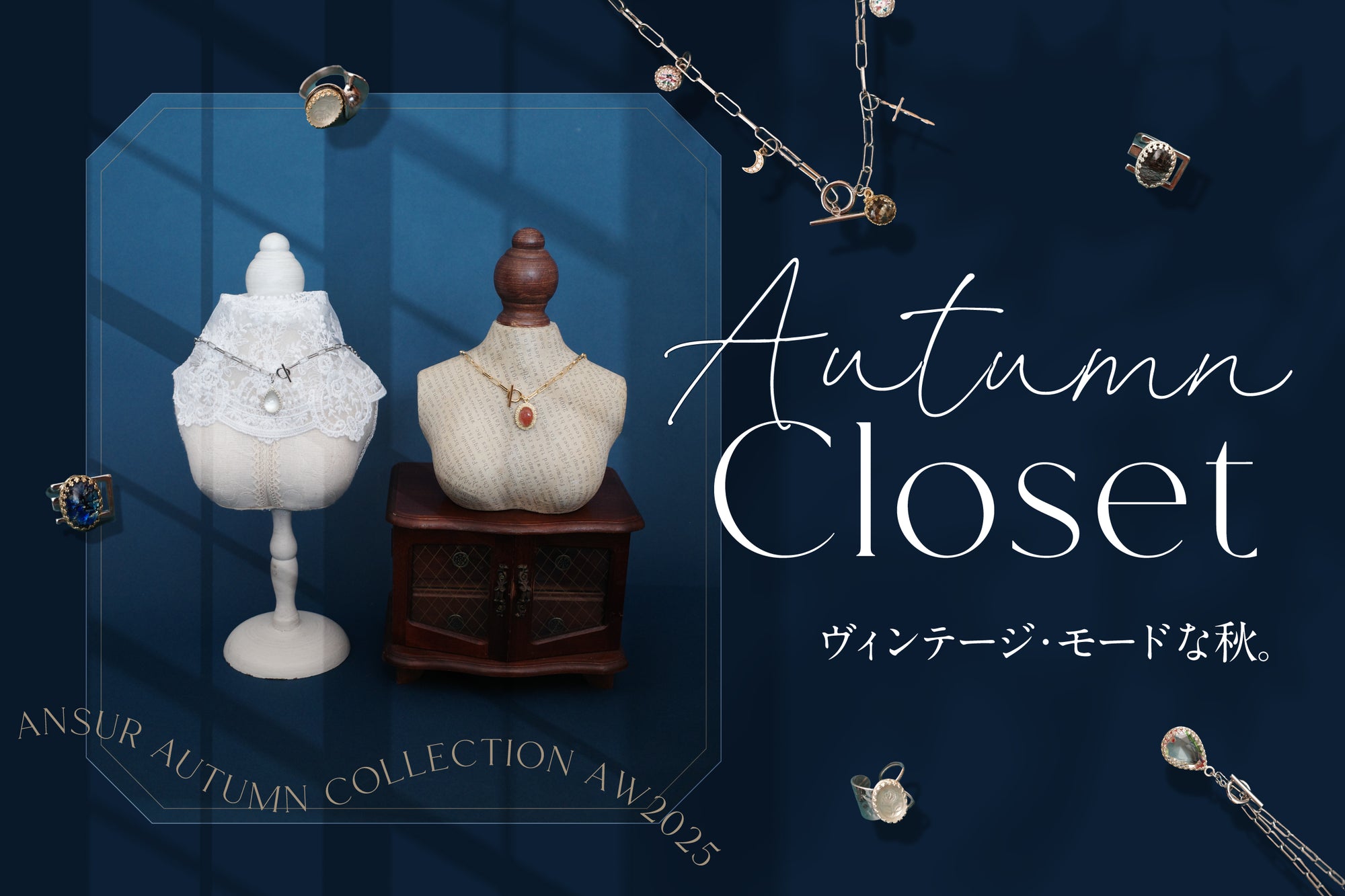 ”クローゼット”という名の通り、ファッションアイテムをモチーフにしたクラシック&モードを融合させたヴィンテージ・天然石アイテムを展開します。