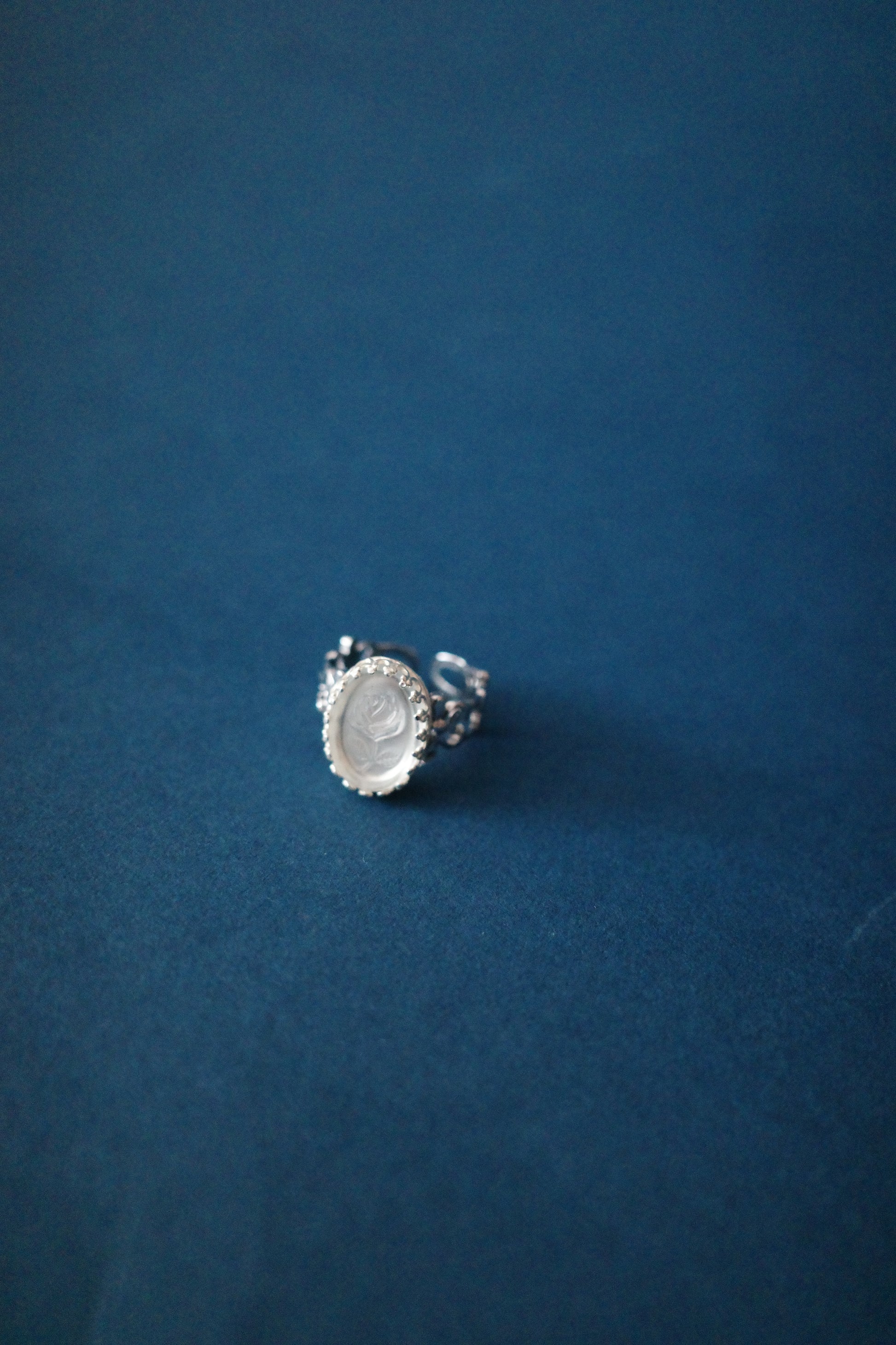 少しアイボリーがかったフロスティホワイトに一凛の薔薇の彫りが入っているクラシックなデザインです。