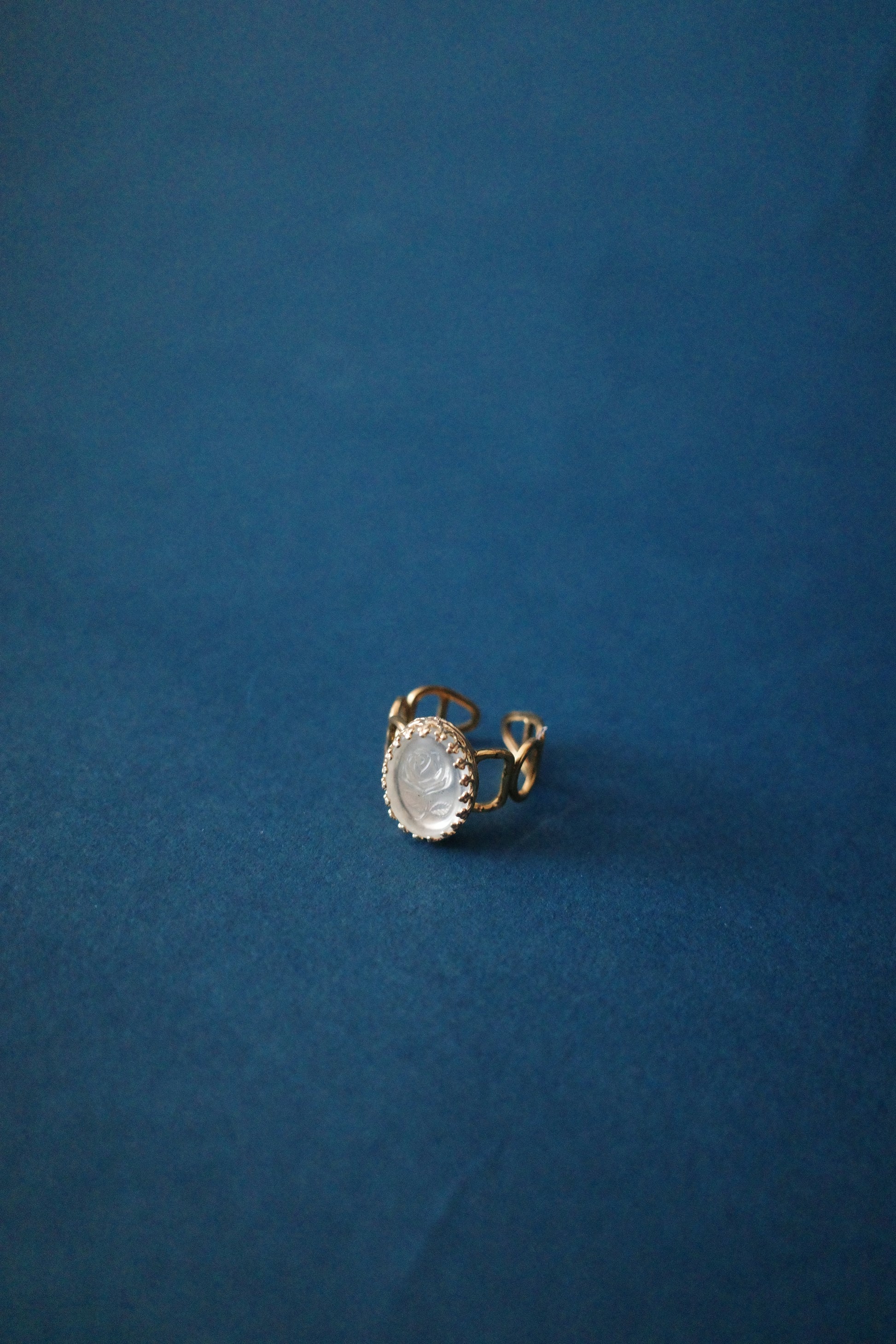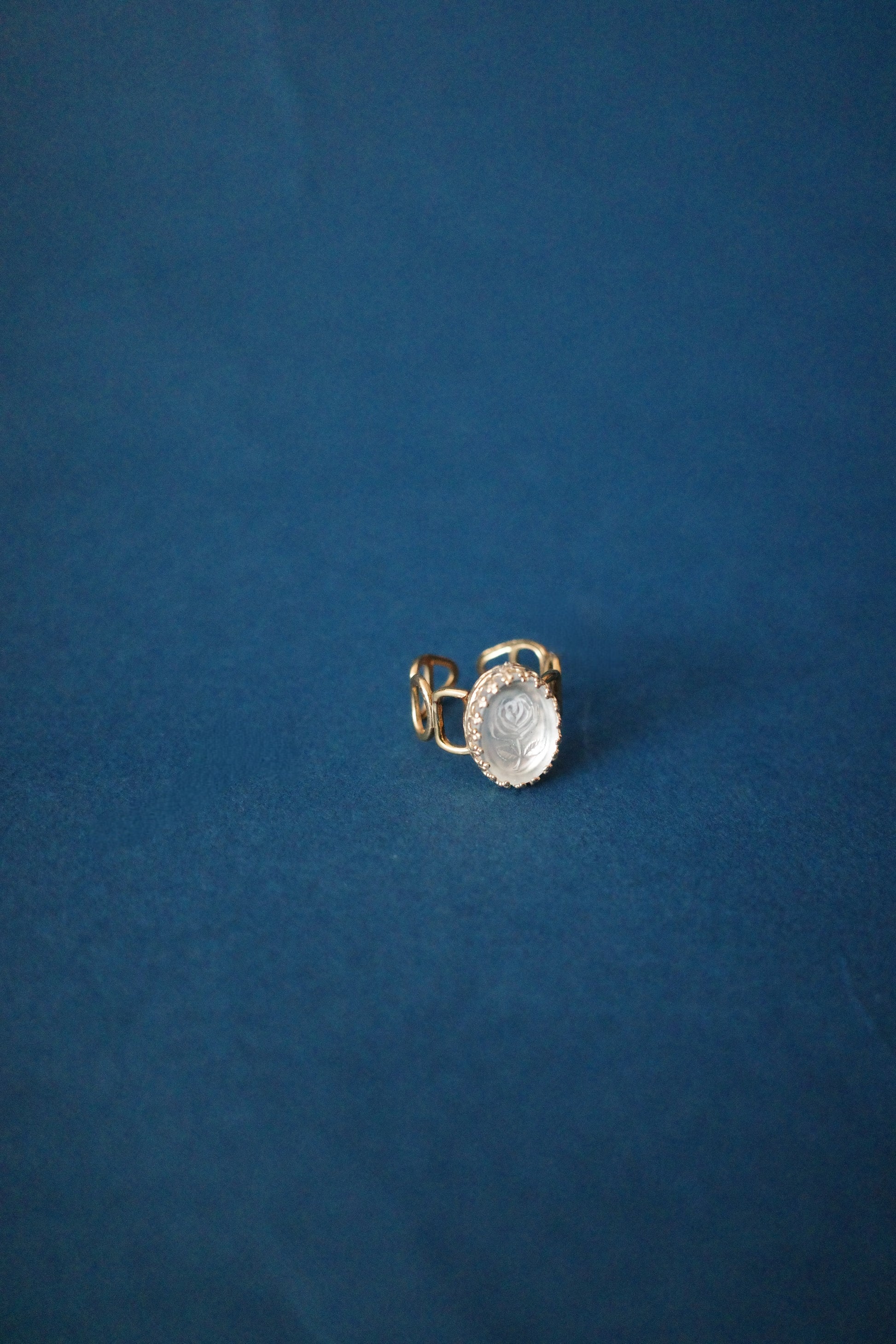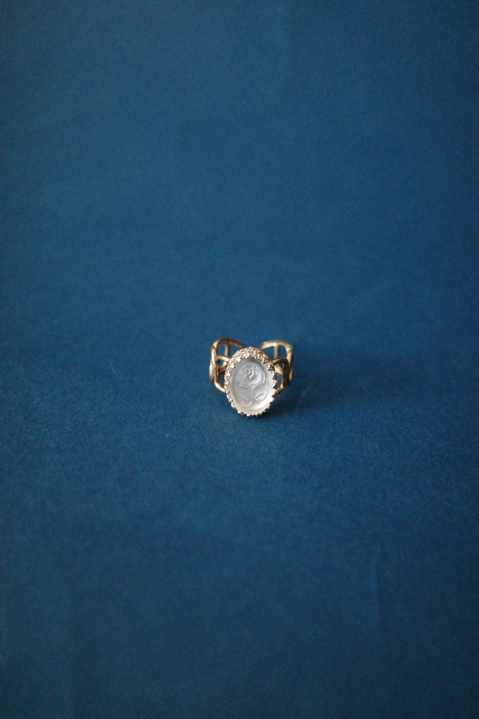 薔薇を氷の中に閉じこめたらこんなデザインになるのではないか…と名付けたのがこちらのヴィンテージリング、「氷中薔薇」。