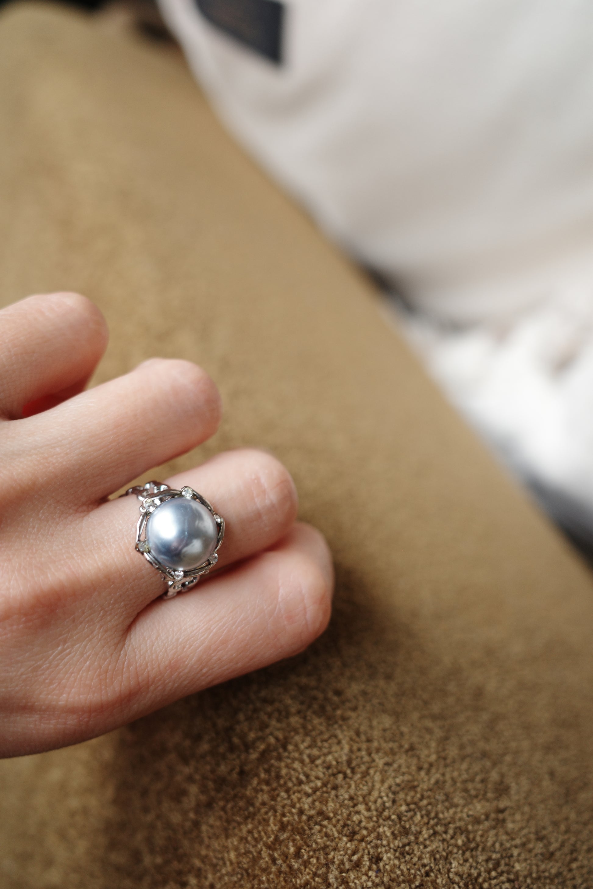 きらめく可憐さが特徴ながら、シルバーパールの上品な艶やかさが決して派手なイメージはさせない絶妙なデザイン。