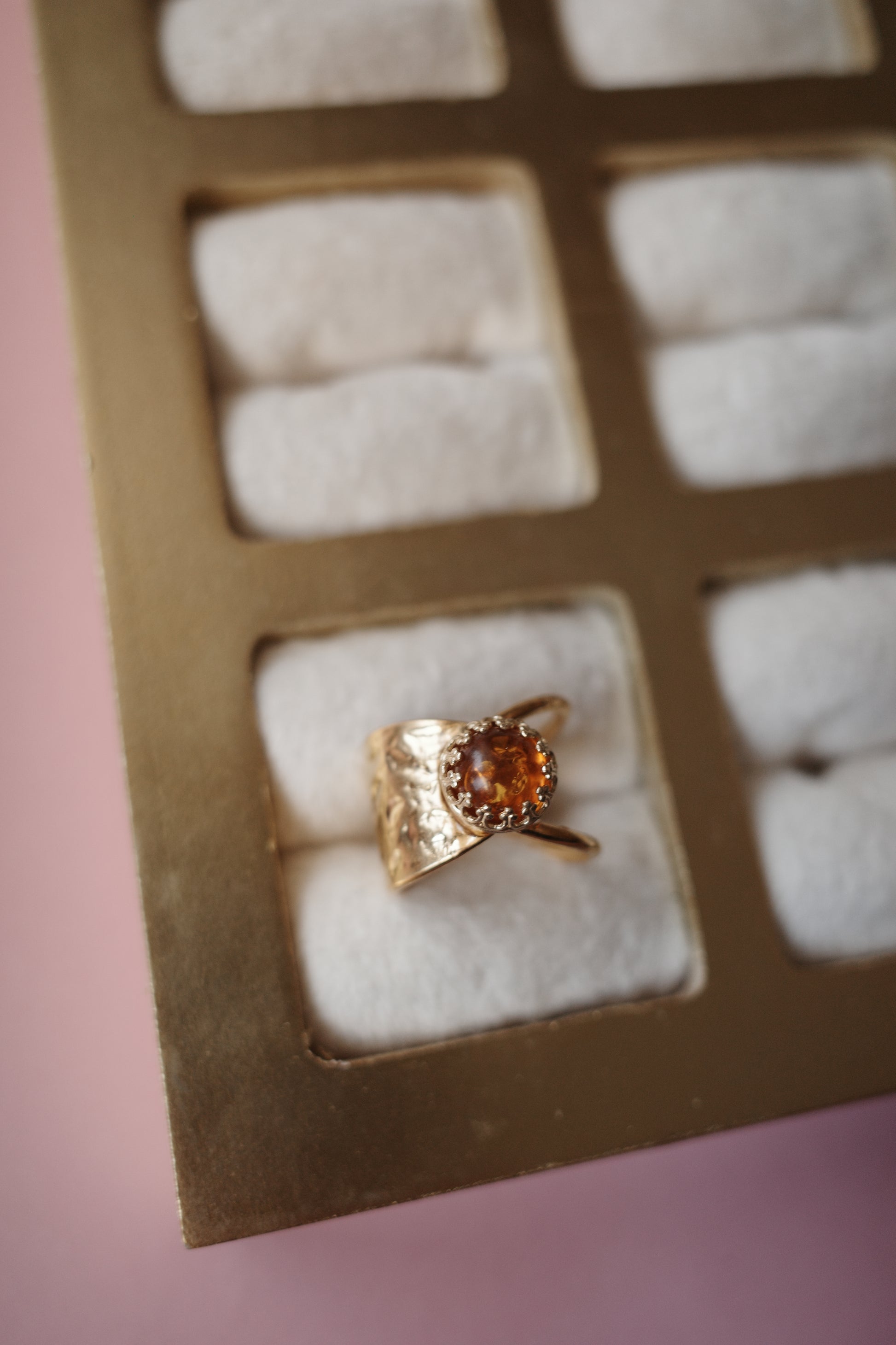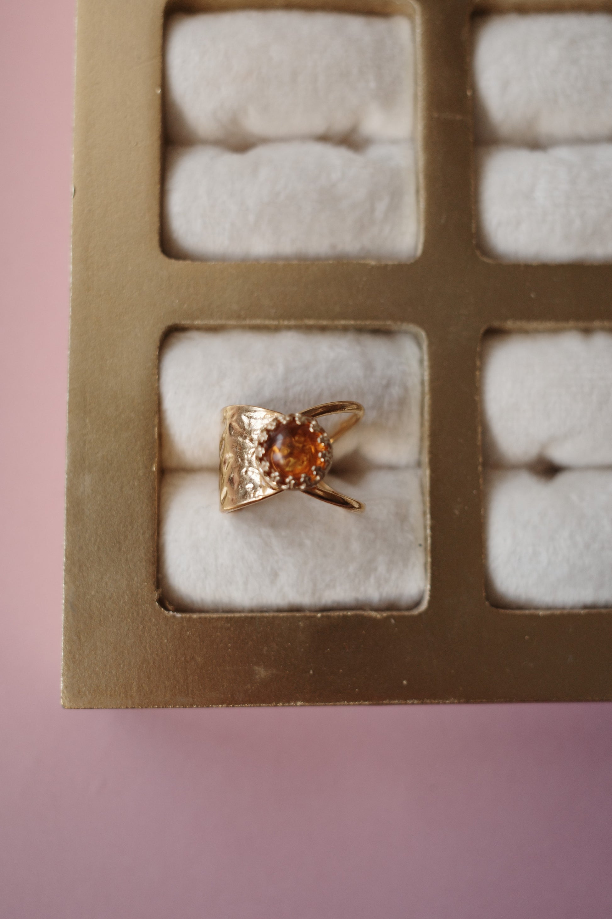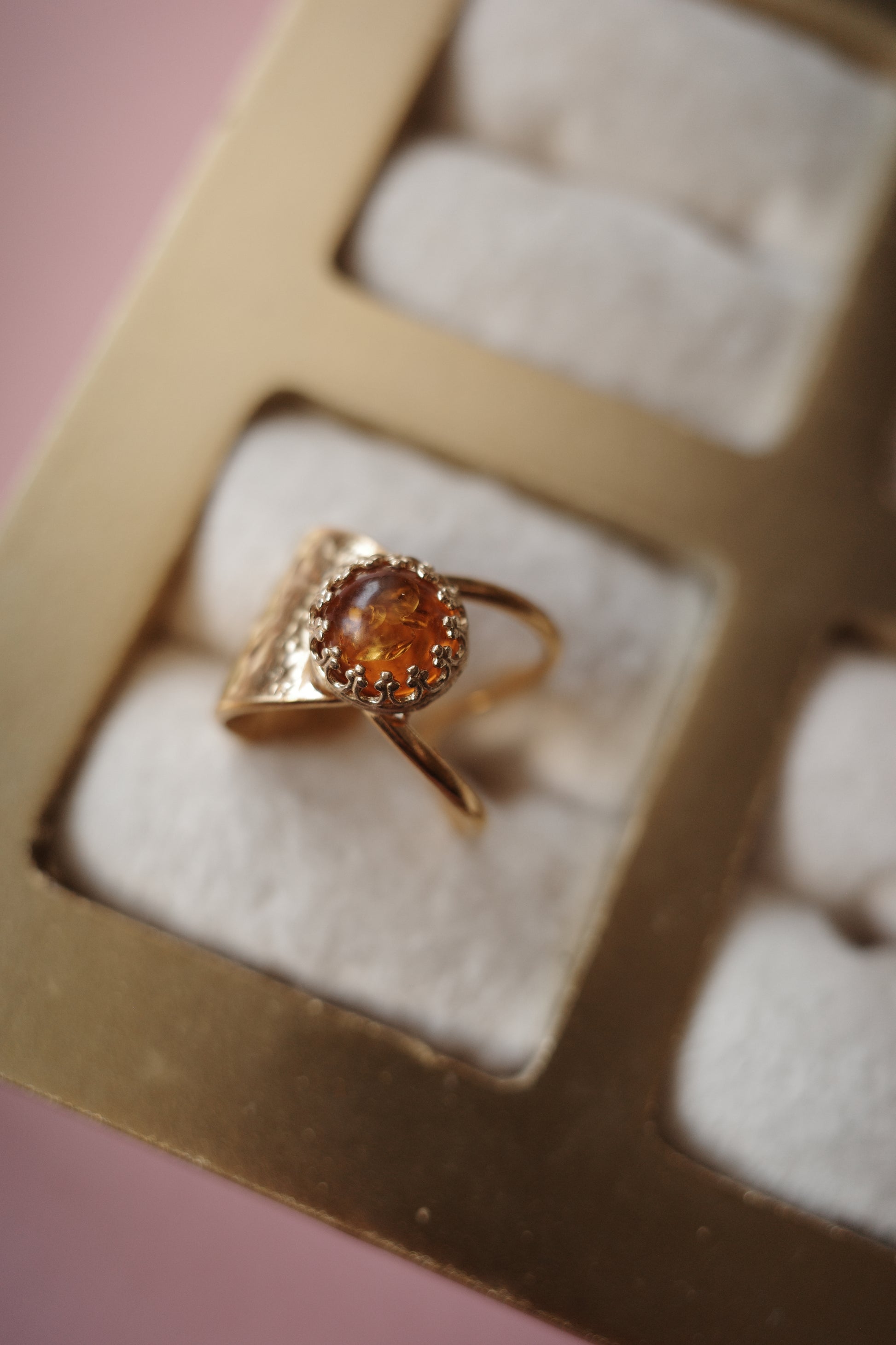 こちらの「茜紅葉」(あかねもみじ)は、秋を象徴するような天然石「クラックアンバー」をはめこんでいます。