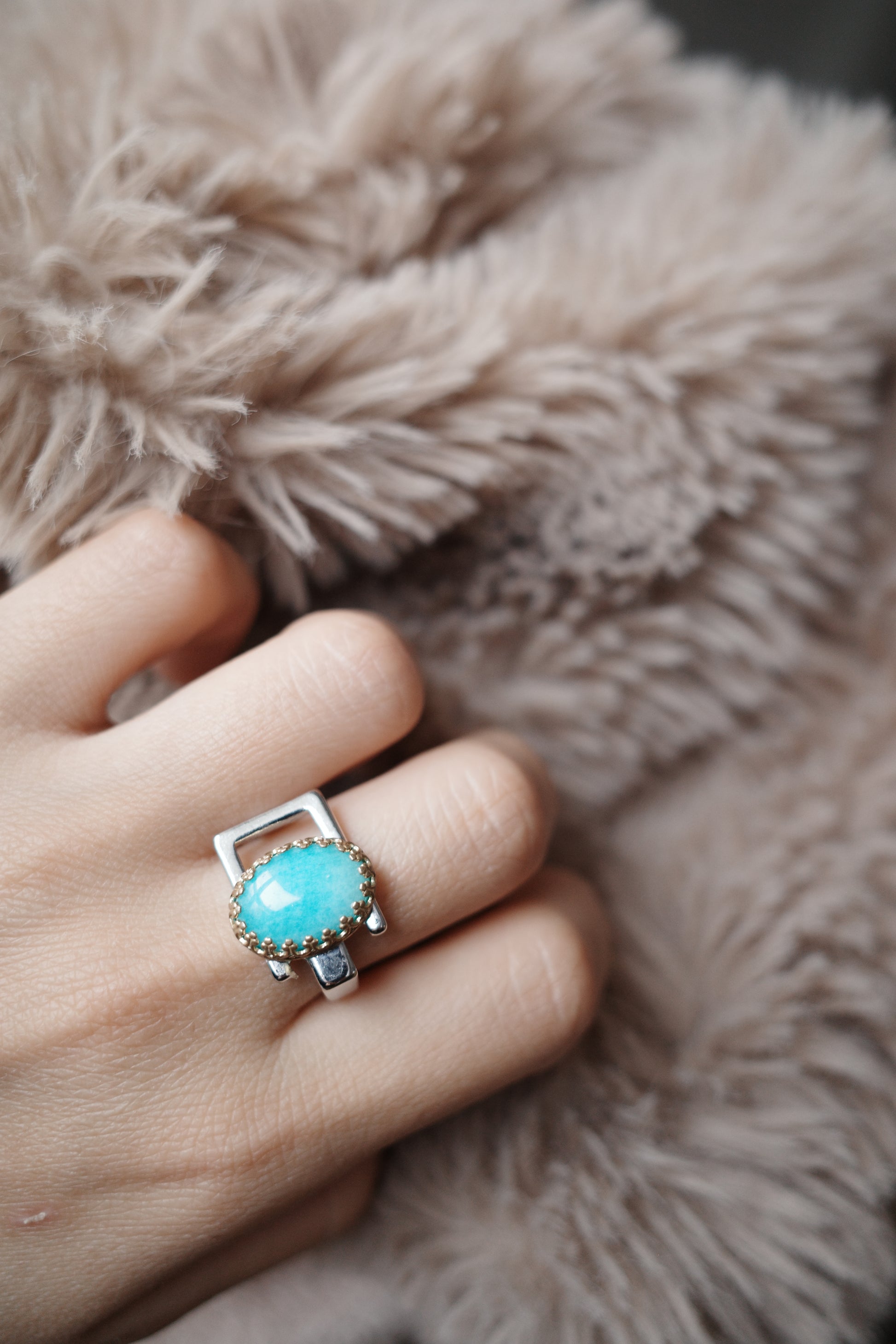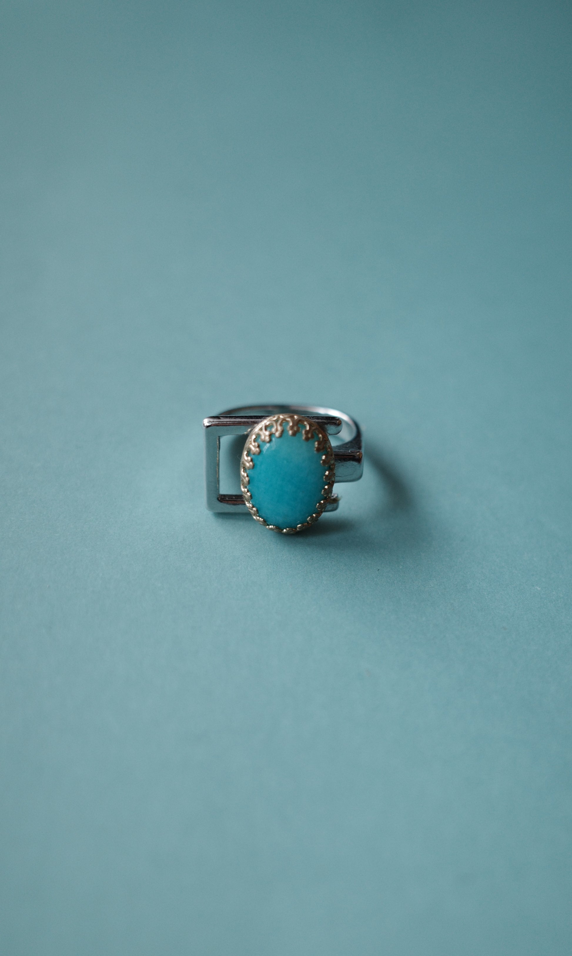 すがすがしいほどに鮮やかで爽やかな色味が魅力の天然石「アマゾナイト」をセッティングしました。