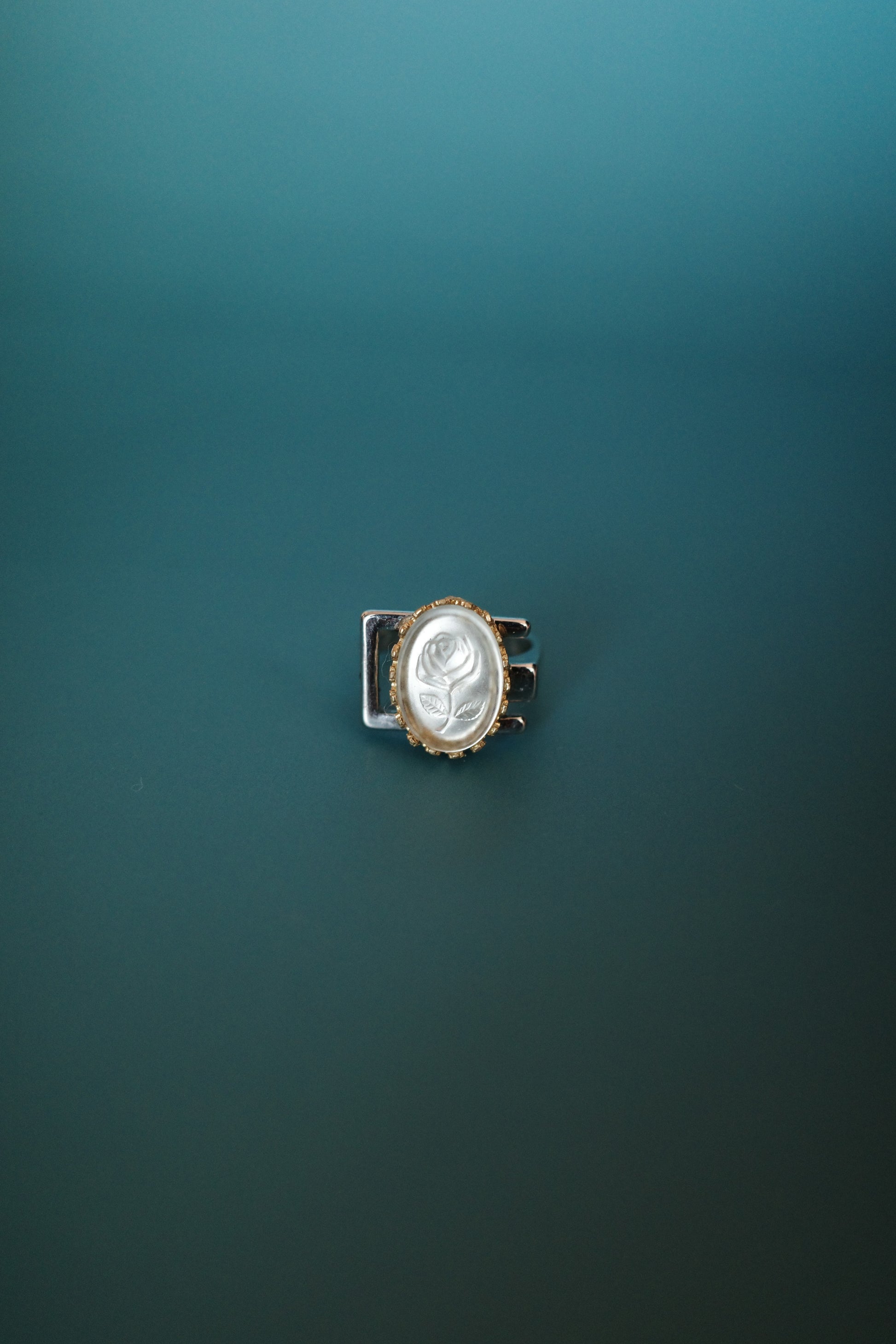 美しい薔薇が彫られた白フロスティのヴィンテージ・クリスタルをセッティングしました。