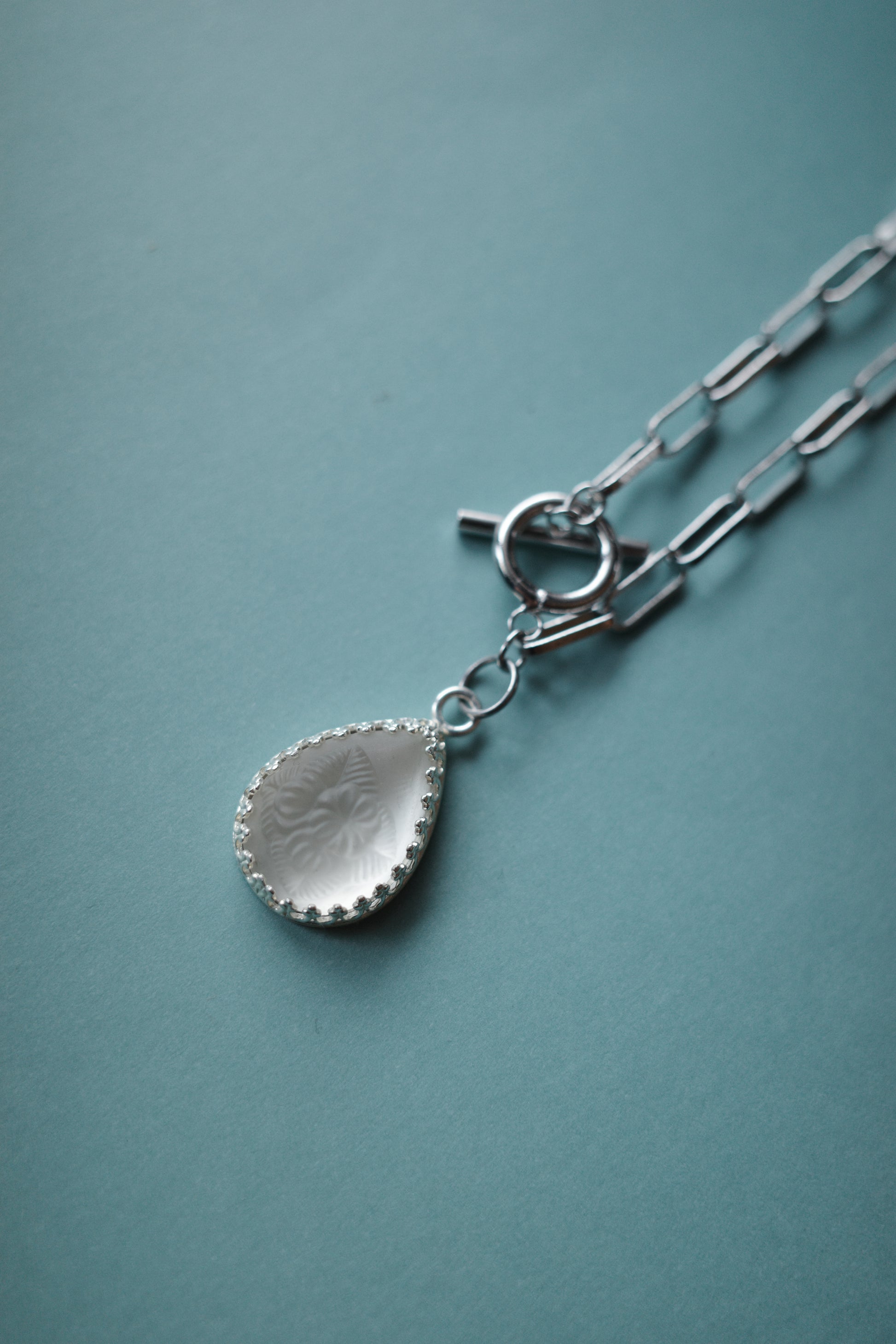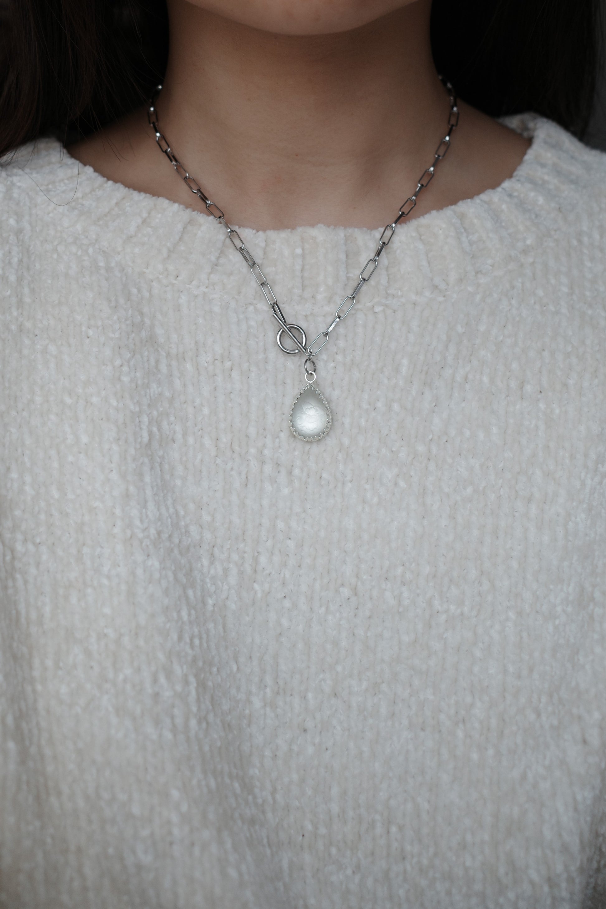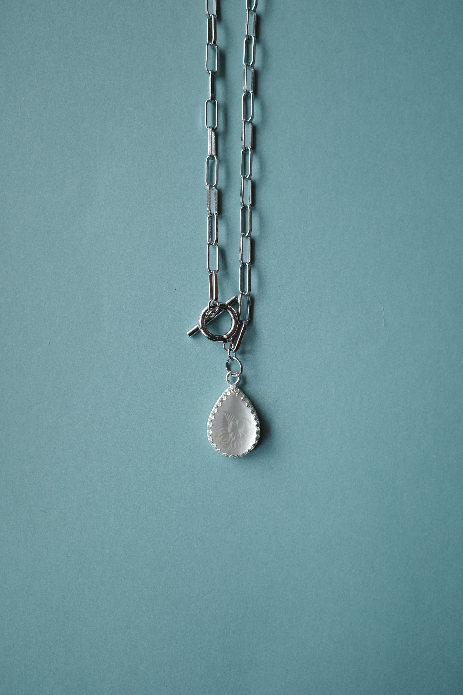 ストーン部分はクラシックなヴィンテージデザインながら、チェーンネックレスに仕立てることで秋冬のモードなコーデを楽しんでいただけます。